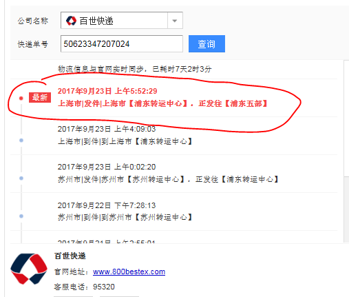 快遞到達(dá)浦東5部之后沒有派件,是否有更新進(jìn)度? 快遞單號(hào):50623347207024